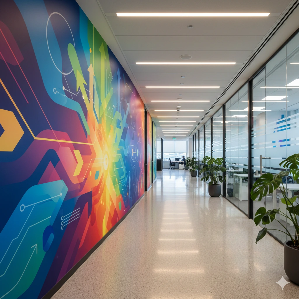 High-resolution eco-solvent & UV printing for indoor, outdoor, wall graphics, and retail environments.